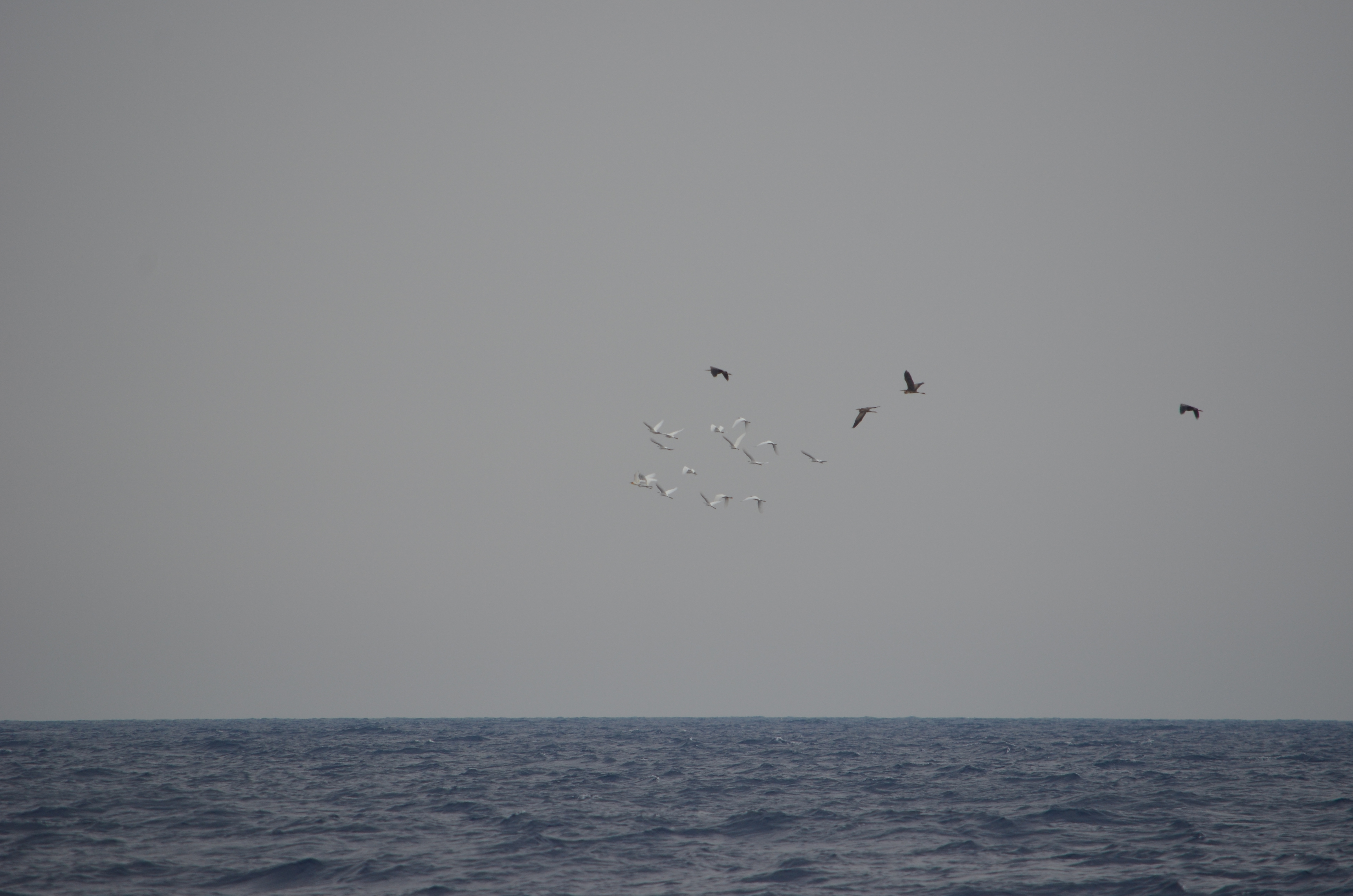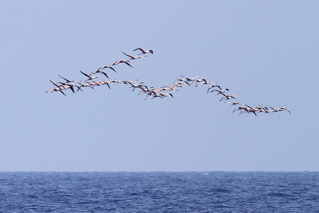 Other migrants are less commonly spotted at sea. Nevertheless, for instance end of August saw several flocks of Greater Flamingos crossing over Malta. The time of their appearance is probably due to the fact that the birds encountered drought in their breeding areas. In comparison to flamingos, herons and egrets have been recorded more often during transects at sea.
