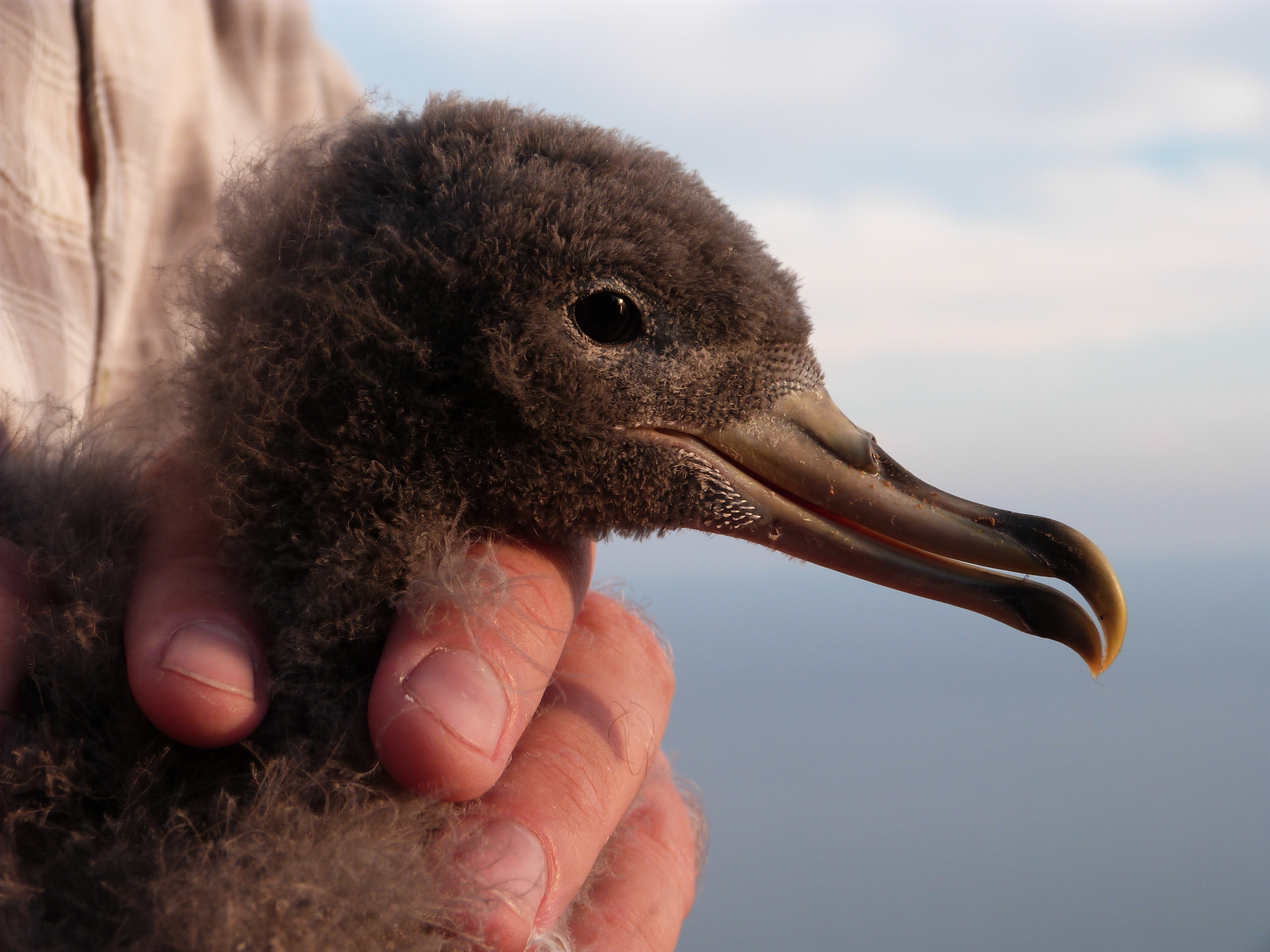 Standing on the golden limestone cliffs that were once the bottom of the Mediterranean Sea, I paused to appreciate these sheer vertical forms on the island of Gozo in Malta in later summer this year. Metres away Birdlife Malta’s seabird scientists Dr Ben Metzger (head of seabird research) and Paulo Lago Barreiro were showing myself and Caroline Rance (also Birdlife Malta) how to look for signs of something very special living here. We could see some splashes of poo and a few white feathers; kneeling down on the hard, crusty rocks we peered with torches into a shallow burrow that had been scarped out beneath a huge boulder. At the end in a larger space a large ball of fluff shuffled and revealed a glistening eye and beak. This was a seabird, a baby in fact, belonging to the Scopoli’s Shearwater, a crow-size seabird that when adult has long, straight wings for gliding long distances across the sea. In Malta, 5% of the world’s population of Scopoli’s shearwater nest here, and globally the species only breeds here in the Mediterranean.